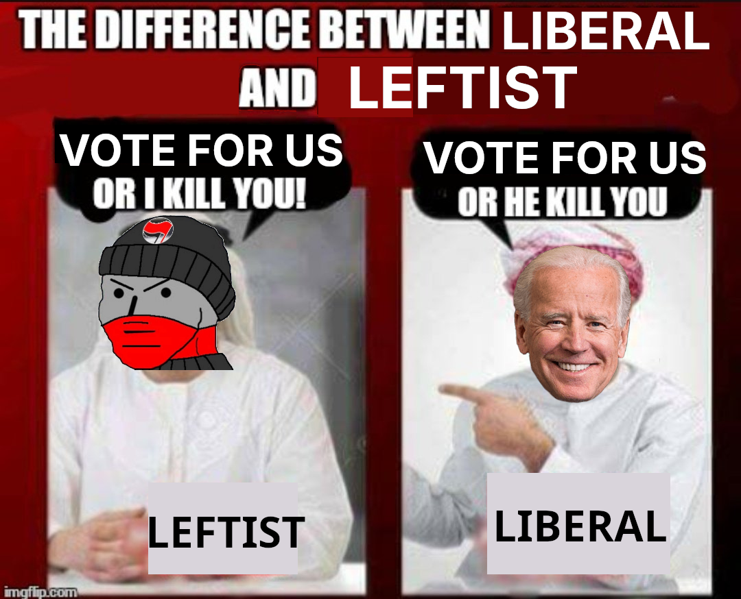 E.g. they think the Left cares about the poor, not realizing the Left wants to sacralize and perpetuate poverty rather than uplifting the poor—or they think the Left stands for “peace”, not realizing that the Left only speaks of peace to the good guys, to restrain them from defending themselves (from criminals, terrorists and terrorist states). Or they see Leftists saying things like “terrorists have human rights too” and think of it as some genuine commitment to civil liberties, free speech, Western civilization etc. not noticing that the Left doesn’t extend the same courtesy it shows terrorists to right-wingers. Terrorists can be called austere religious scholars, internal political rivals cannot.