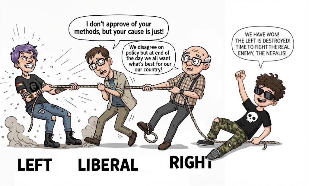 Thus Leftists lead the offensive battles while liberals secure and defend established territory in their stead, putting down any insurgents (right-wingers).